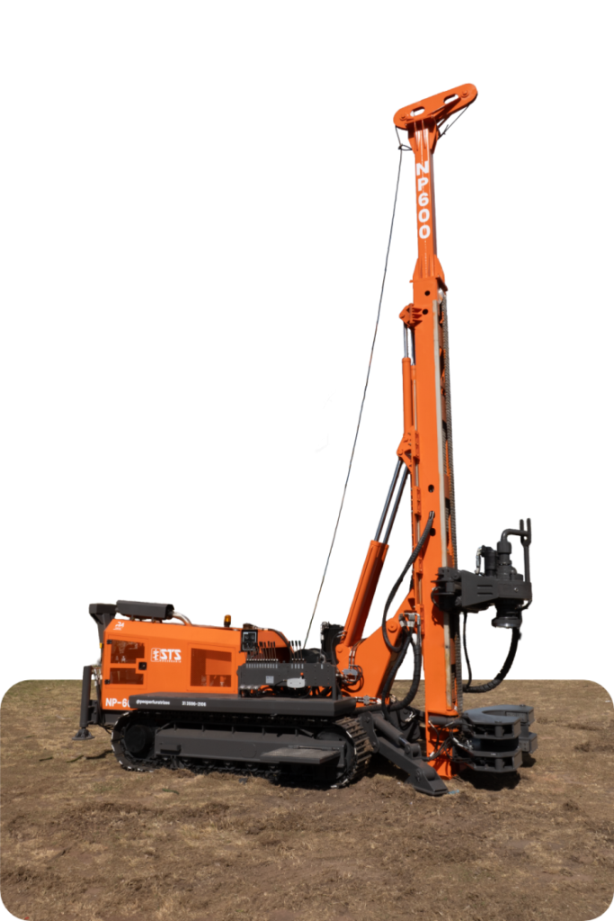 Perfuratriz Hidráulica NP-600, desenvolvida especialmente para atender as obras mais desafiadoras de Estaca Raiz. Perfuratriz Robusta, baixo custo de manutenção e composta com os melhores componentes disponíveis no mercado. Cabeçote de alta Perfomance composto com dois Motores Hidráulicos, bombas hidráulicas de alta vazão e pressão